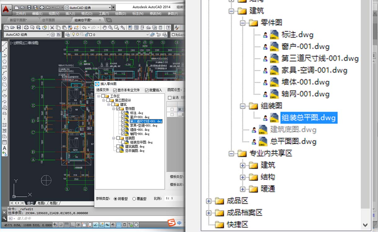 以零件图、组装图方式实现专业内、专业间的协同设计工作,提供专业内共享图和专业间共享图,可有效提高设计生产效率,尤其对标准厂房、房地产住宅等项目设计效率提升明显,提供自动生成零件图和组装图功能,提高零件图生成效率。