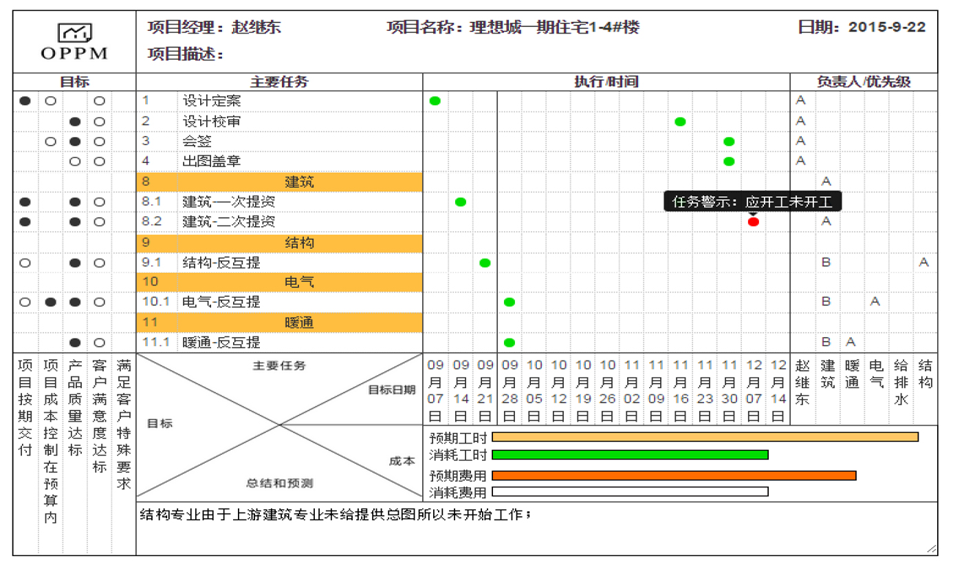 通过部门经营总览、生产总览、项目OPPM(一页纸项目管理),既可洞悉部门经营和生产情况,也可了解项目进度、质量、成本、成果、风险以及全过程执行情况。