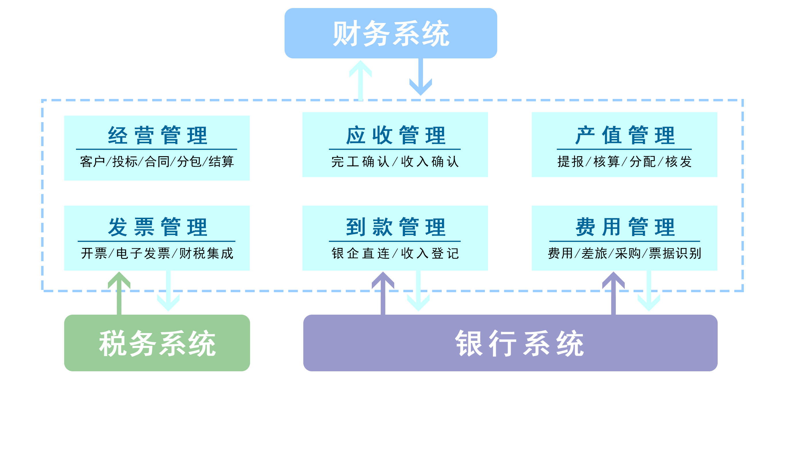 产值管理以及与财务系统、税务系统、银行系统实现直连和集成一体应用